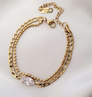 Crafted with real gold plating, this exquisite bracelet features a dual-layer design with a mix of figaro and beaded chains,...